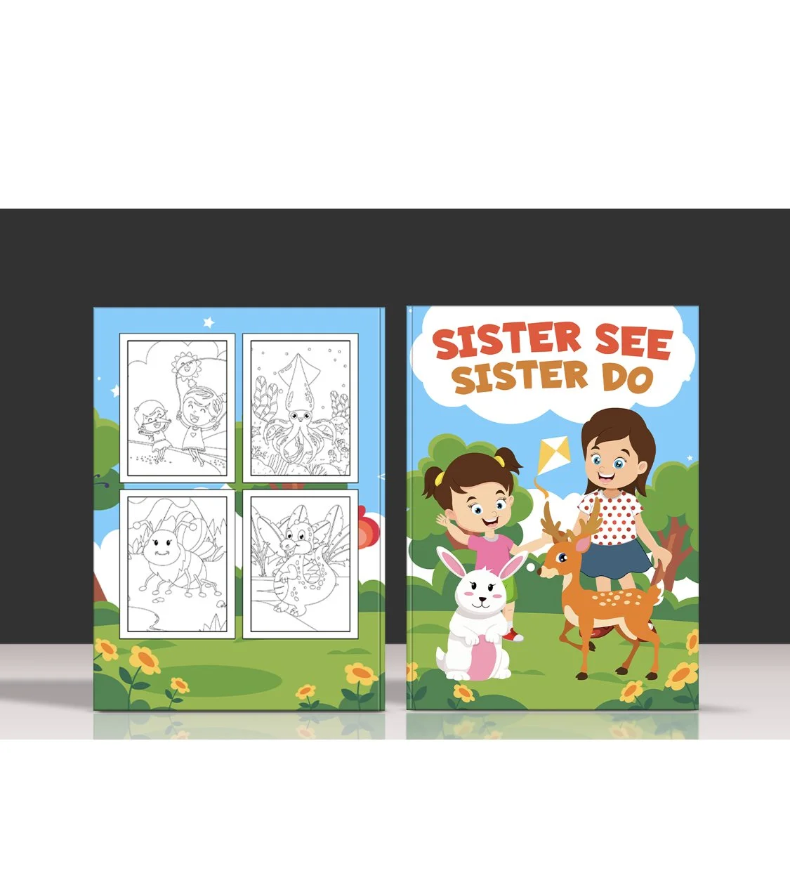 Discover 'Sister See, Sister Do: A Coloring Book For Two', a unique coloring adventure designed for siblings to share. With the same image flipped on both sides of each page, sisters can sit across from each other and color the same picture at the same time. Filled with delightful scenes of sisterly fun, this coloring book is more than just a collection of images - it's a tool for fostering creativity, cooperation, and togetherness. Dive into a world of shared creativity with this innovative coloring book.